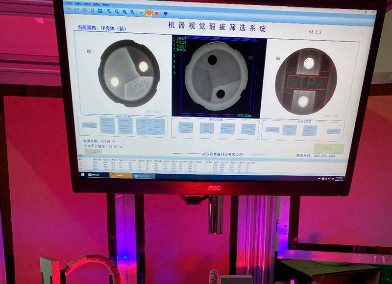 本實用新型通孔檢測設(shè)備,解決了溫控器陶瓷導(dǎo)向架中心孔變形、粉塵、毛刺、堵孔等不良問題,多年來可做到客戶零投訴率?! 〖夹g(shù)領(lǐng)域: 本實用新型屬于陶瓷產(chǎn)品加工技術(shù)領(lǐng)域,具體涉及一種陶瓷產(chǎn)品通孔檢測設(shè)備?! ‖F(xiàn)有技術(shù)存在以下問題:現(xiàn)在的陶瓷產(chǎn)品往往通過人工進行通孔檢測,進而進行篩分,造成檢測篩分時間長,效率低、成本高、易漏檢。 實用新型內(nèi)容: 為解決上述背景技術(shù)中提出的問題。本實用新型提供了一種陶瓷產(chǎn)品通孔檢測設(shè)備,具有檢測快速,篩分便攜,自動化程度高,分辨率高,無漏檢等的特點?! 閷崿F(xiàn)上